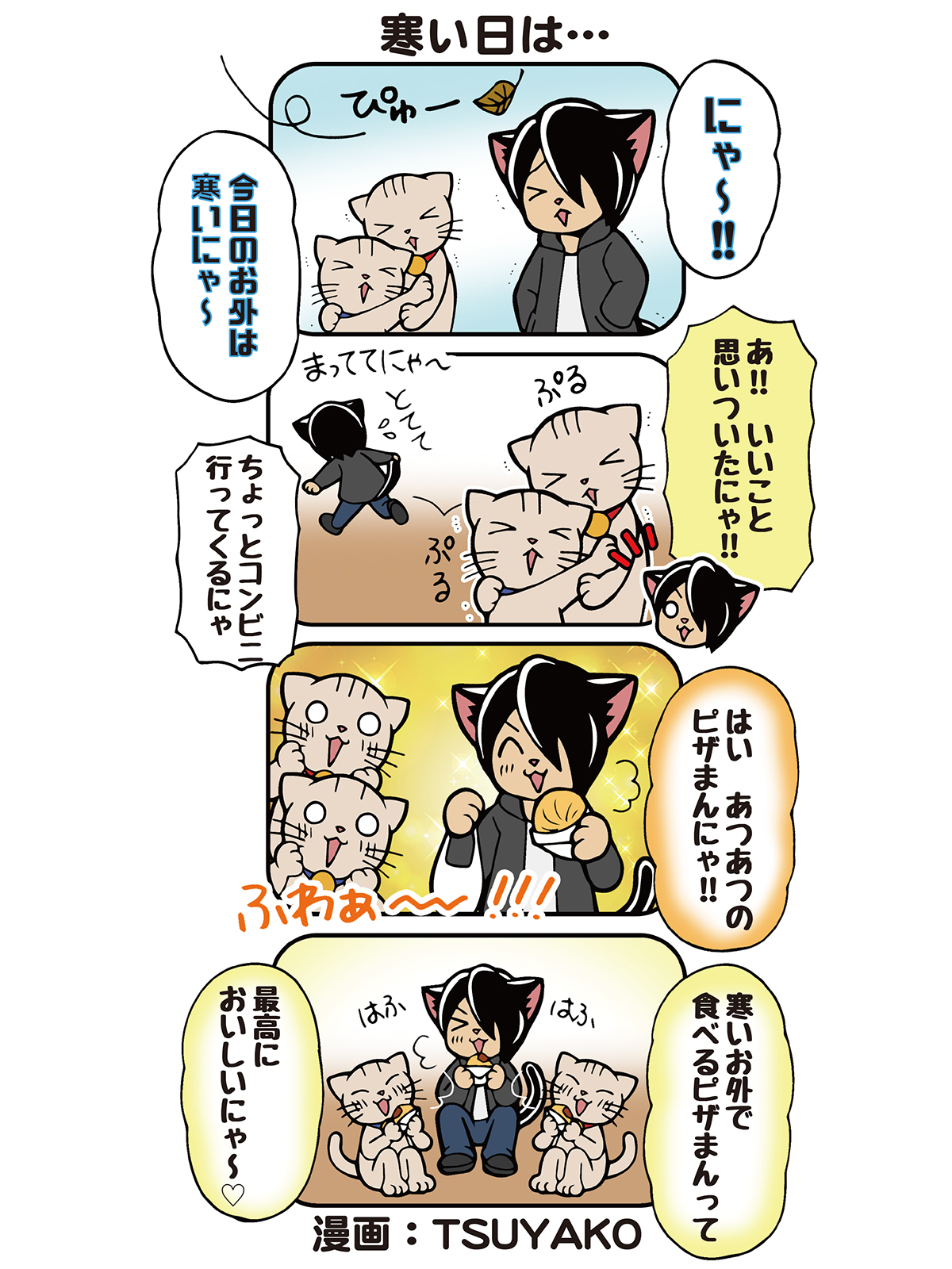 猫になりたくて、猫の着ぐるみを着ているミニ豚。メンバーの弟的存在。いじられキャラですぐめげるが、ごはんを食べるとすぐに忘れて元気になる。ペットとして飼われていたが、飼い主がリストラされてお金がなくなった時、「いっそこの子を食べようか」と話しているのを盗み聞きして、逃げ出してしまう。その時、一緒に飼われていた猫は変わらずに可愛がられていたので、豚である自分が嫌になり、猫になりたいと猫のコスプレをするようになった。にゃんとが実は子豚であることを知っているのは、にゃん蔵のみ。