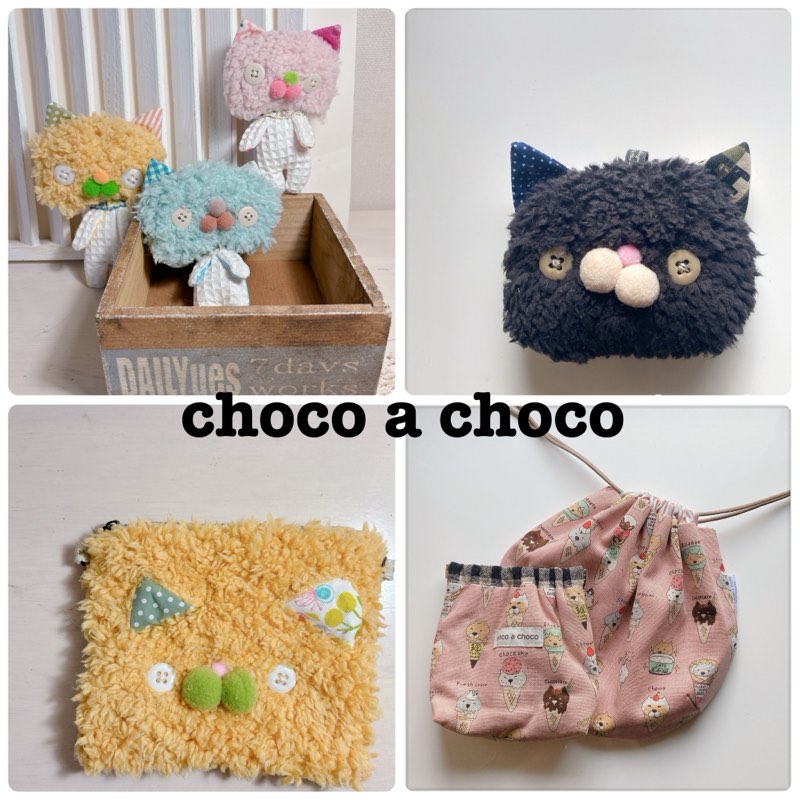 今回2回目の出展です。ふわもこのネコのブローチやマスコット、ポーチをはじめ、ネコづくしの布雑貨をお持ちします。