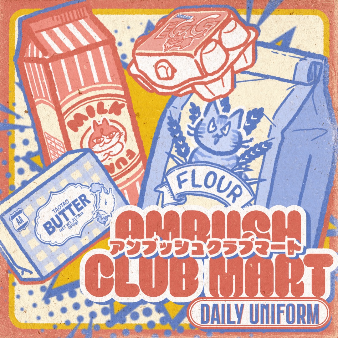 いらっしゃいませこんにちは!!今回は架空のスーパーマーケット「AMBUSH CLUB MART」をテーマに、ロンT、トラックパンツ、エコバッグをご用意しております。 また、あなたの猫ちゃんオリジナルのプロフィールカードをお作りします!!誕生日・名前・性格などを入れて、スマホの写真を送るだけでOKです♪