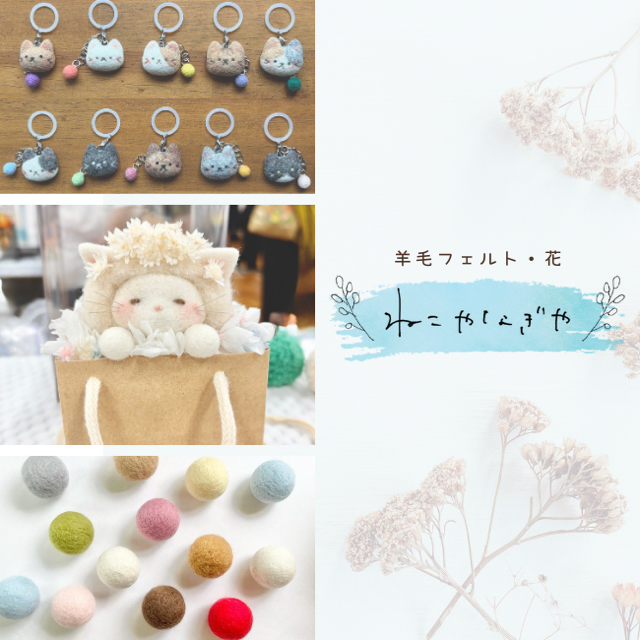 ウチ猫2匹と保護猫預かり猫ちゃん達と暮らしているねこやなぎです。 『羊毛フェルト』『花』を使った猫のおもちゃ、置物の他に、めじるしマーカーや新作もご用意してお待ちしております!是非お気軽に覗きにきてください♪