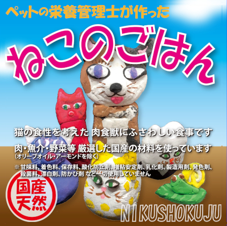 ねこのごはんです。 手作りご飯に興味はあるけどどうしたらよいかわからない方、今やっているけど大丈夫なのか不安。腎臓の数値が悪いで療法食でないといけないが食べてくれない、など日々のご飯のことご相談ください。ねこのごはんは手作りご飯をそのままレトルトパックにしたごはんです。ぜひお立ち寄りいただきお話聞かせてください。