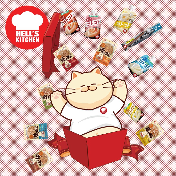 “Hell‘s Kitchen”へようこそ! 三ツ星を支えているのは、食材、作り方、そのほか様々な事においてこだわっている「地獄」のように厳しいキッチンです。 これはペットフードの製造でも同じことであり、我々の「セントラルキッチン」で厳選された「美味しさ」と「楽しさ」をお届けします。 活気あふれる大忙しの厨房”Hell‘s Kitchen”から、選りすぐりのメニューをお届けします。 食通であるネコちゃんの舌をうならせること間違いなし! ”Hell‘s Kitchen”のシェフマークは妥協なしの証です。